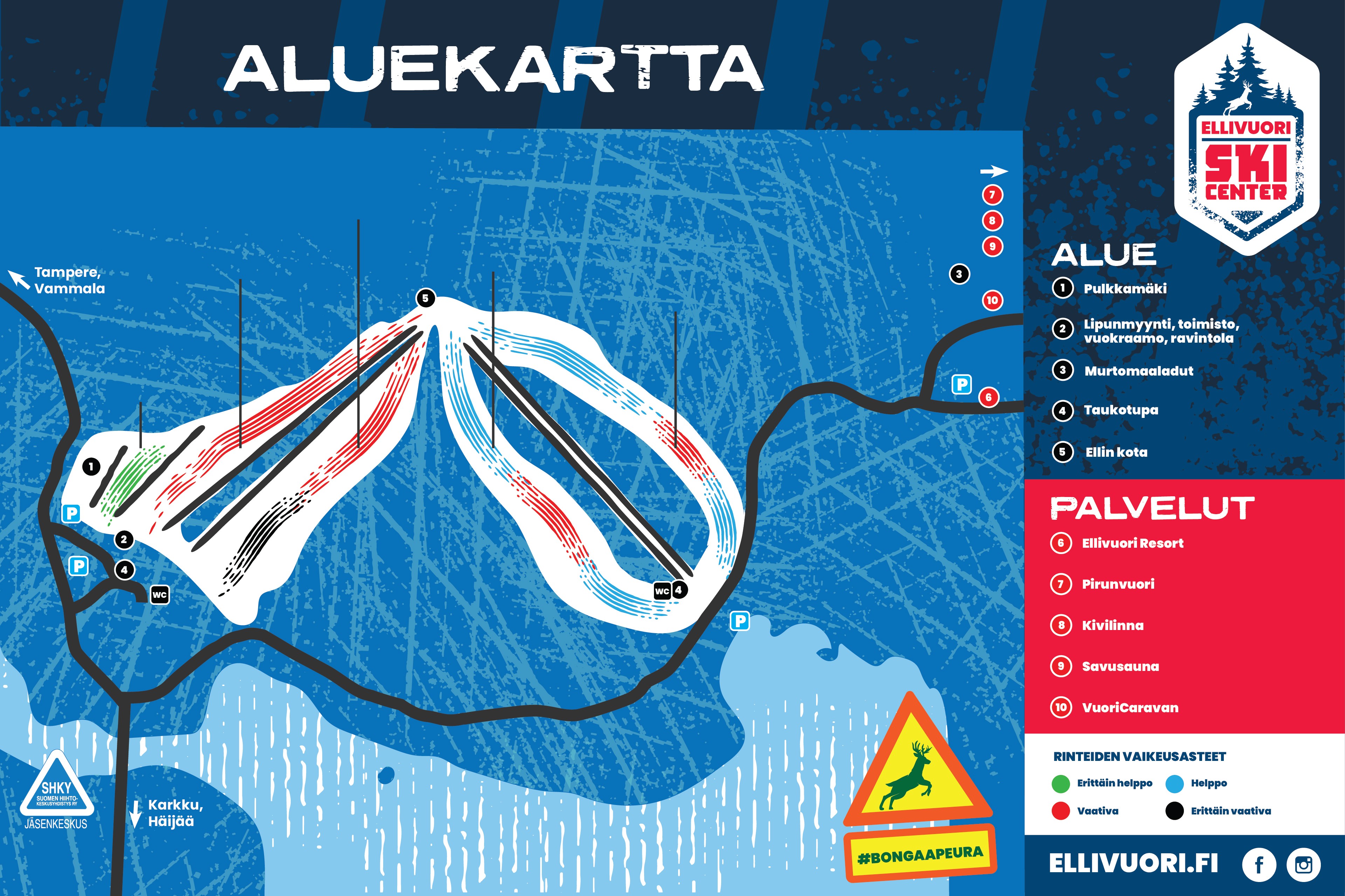 Ellivuori sijaitsee Sastamalassa lähellä Tamperetta ja on Länsi-Suomen mittavin laskettelukeskus. Valaistuja ja lumetettuja rinteitä löytyy kuusi, vaikeusasteiltaan vihreästä mustaan. Erityisesti Ellivuori on lapsiperheiden, kouluryhmien ja harrastustaan aloittelevien paikka. Laskettelukeskuksen palveluihin kuuluvat välinevuokraamo, hiihtokoulu ja ravintola. Ellivuori Ski Center on SHKY:n jäsenkeskus.