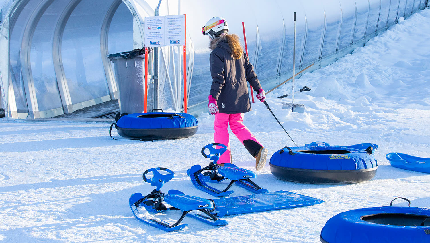 Lumimaa houkuttelee perheen pienimmät mäkeen