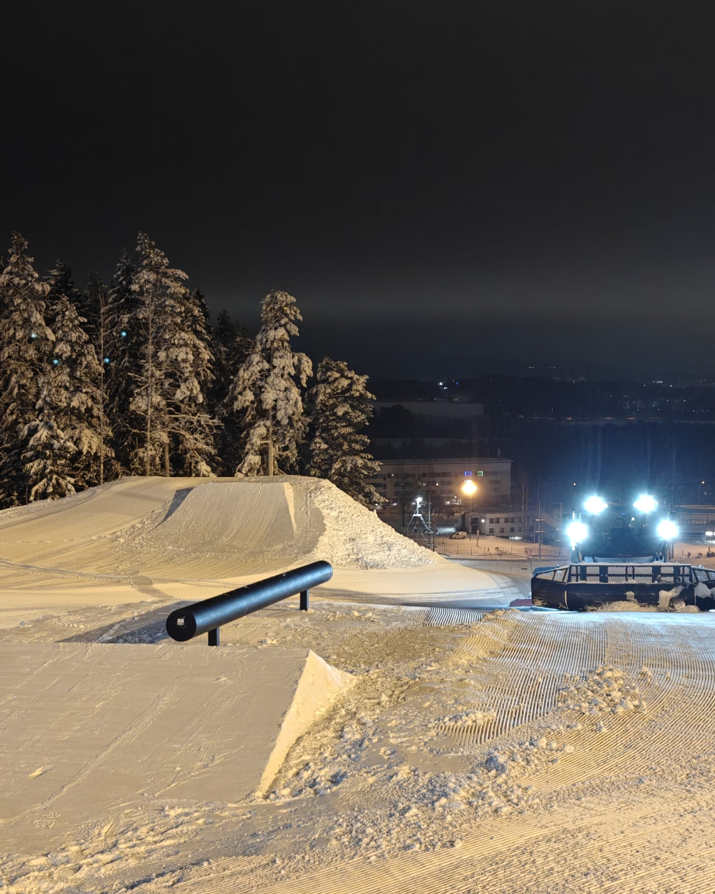 Alhaalta katsottuna vasemmalle puolelle eturinteitä tehdään pohjan muokkaustöitä. Kaltevuutta korjataan ja samalla rinteistä tulee entistäkin nautinnollisemmat laskea. Samalla rinteille tehdään tasaista tilaa suuria säilölumivarastoja varten, joita tarvitsee liikuttaa mahdollisimman vähän.
