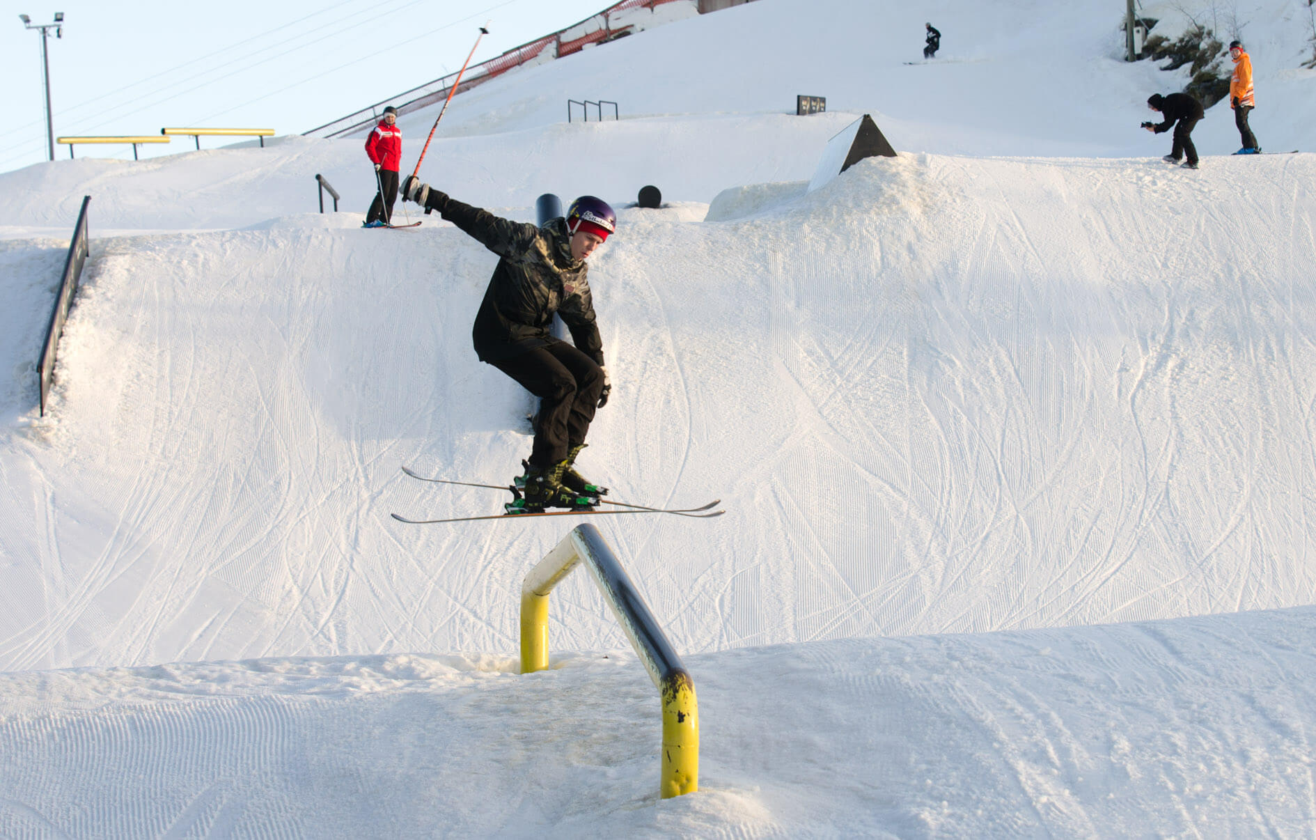 Melkein jokaisessa hiihtokeskuksessa on temppuhenkisille laskijoille jonkinlainen snowpark.